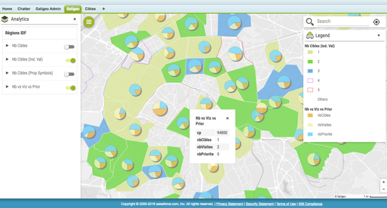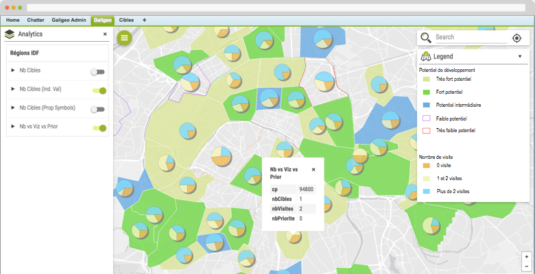 Prenez des décisions rapides grâce à la visualisation d'indicateurs personnalisés (Chiffre d'affaires existant, potentiel business ou données socio-démographiques).