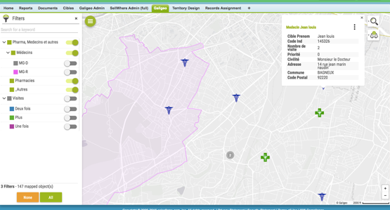 Une fois vos cibles prioritaires identifiées, vos équipes commerciales planifient leurs activités depuis la carte.